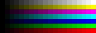 As a basic check, here is a scale of grey and primaries. All steps should