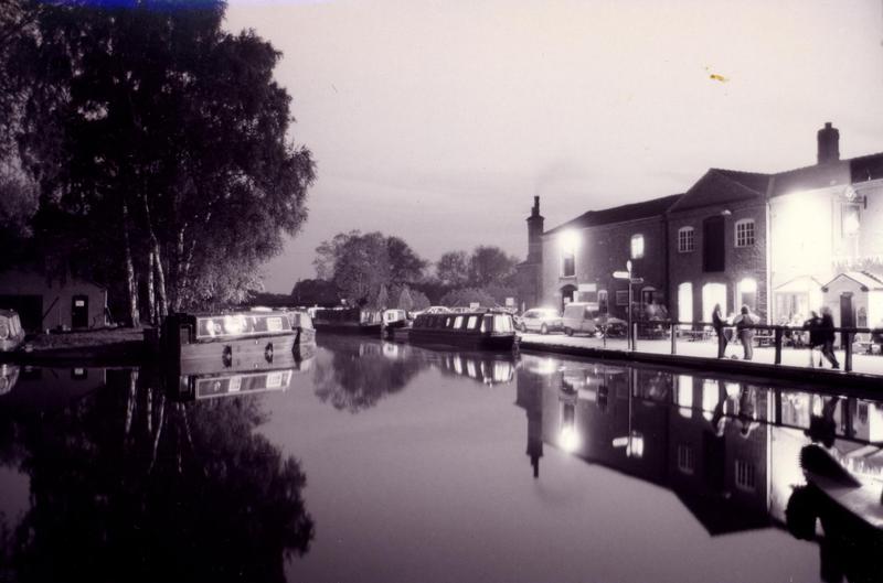 Long exposure of the Swan at Fradley Junction by night