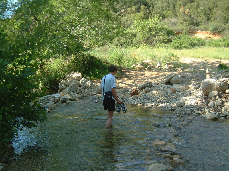 Crossing the stream to get to the next location...