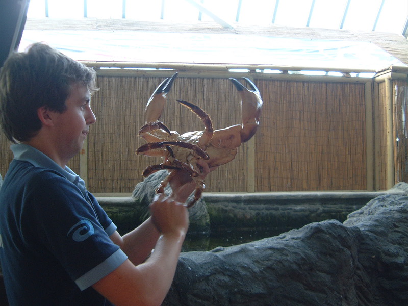Nudefest visits an aquarium in Newquay. A demonstration on how to handle a lively crab.