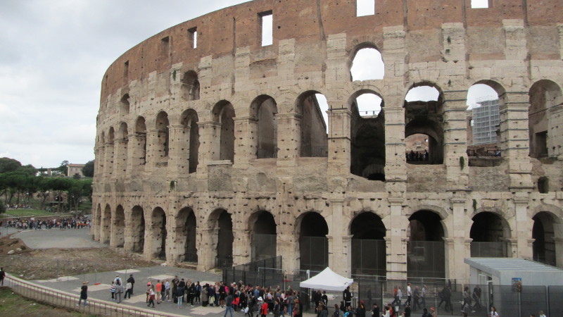 The most popular tourist attraction in the world. Crowds of visitors, ticket touts and selfie-stick sellers. Colosseum.