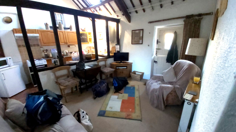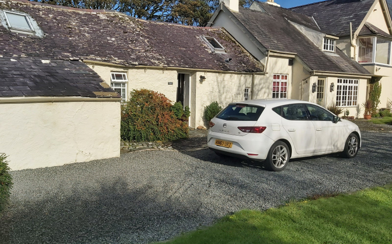 The cottage Ty Lawr Stables on the left with the interesting roof line, the owner's house to the right