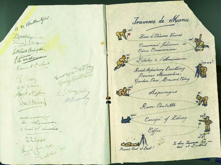 Life was very easy, we were qualified in survey and either "flash spotting" or "sound ranging". So all that remained was "how to be an officer", etc. Twice a week some dear old colonel came along to tell us about uniform, equipment, etc, details of joining our first regiment and how to write to the Adjutant. Our visiting cards must be engraved, not printed, and the prefix to our name was "Mr" and not "Lieut". How long after joining your unit before you deliver your card to the CO's wife, etc. We could never find out his name so we called him "the buck shee colonel". On passing out we had dinner at a hotel in Salisbury and invited all the officer instructors. Some came, including the buck shee colonel. Nigel (an architect) and I prepared a menu card of which I had 27 copies done at the Council Offices in Salisbury. The back was left blank for everyone to sign his name. Now we will find out the colonel's name. He however had his ear to the ground and he signed all our menus "The buck shee colonel".