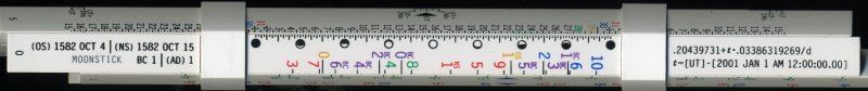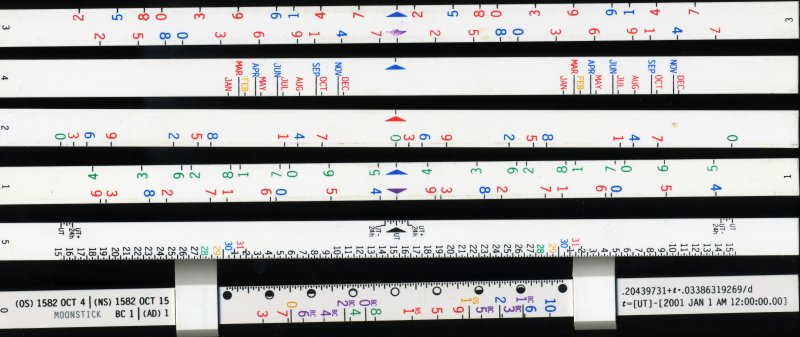 Moonstick. This is not a general-purpose slide rule like the others on this page, but it's a member of the same family. It's a modern device, which tells the phase of the moon for any date and time within a few thousand years before or after now. It is not logarithmic and performs only addition modulo one lunar cycle.