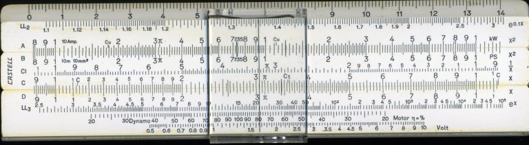 For slide-rule freaks only, a detailed list of my slide-rules. Instructions for using one are here.